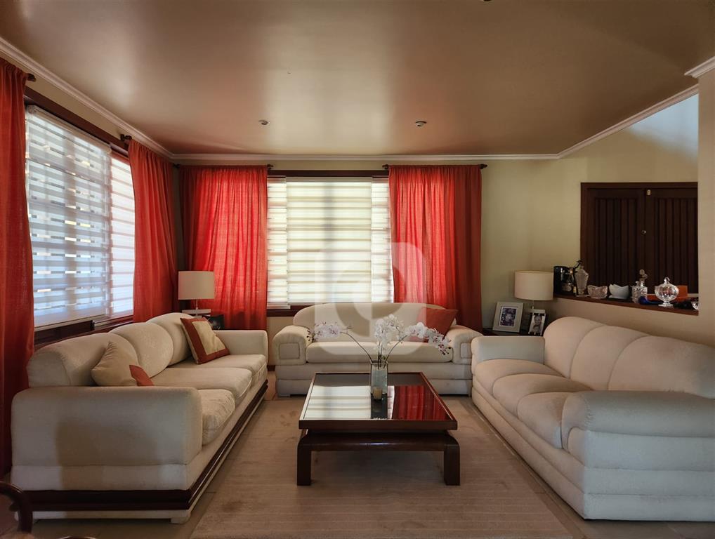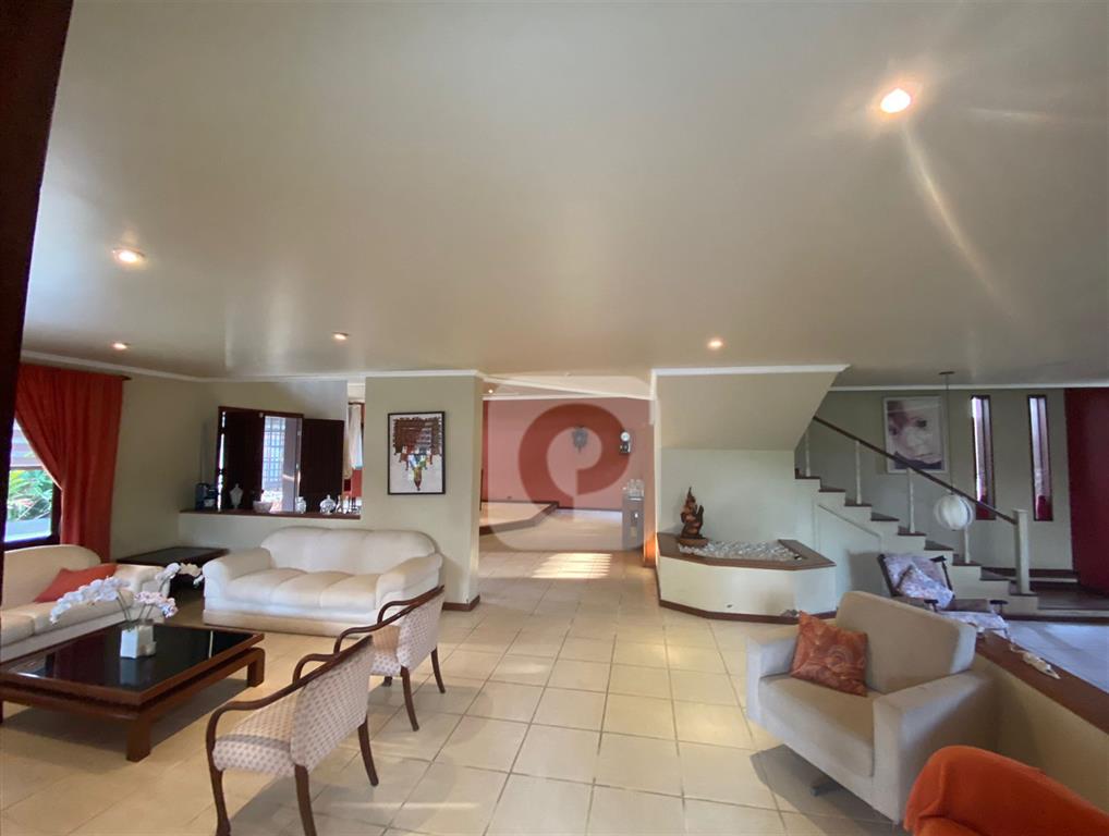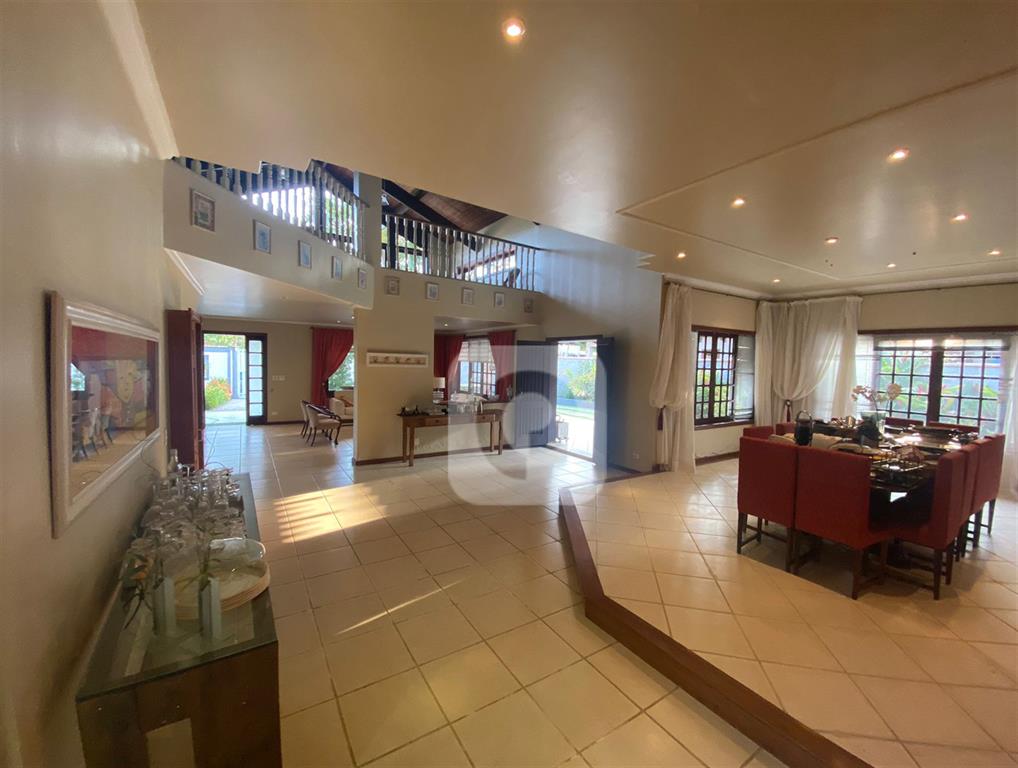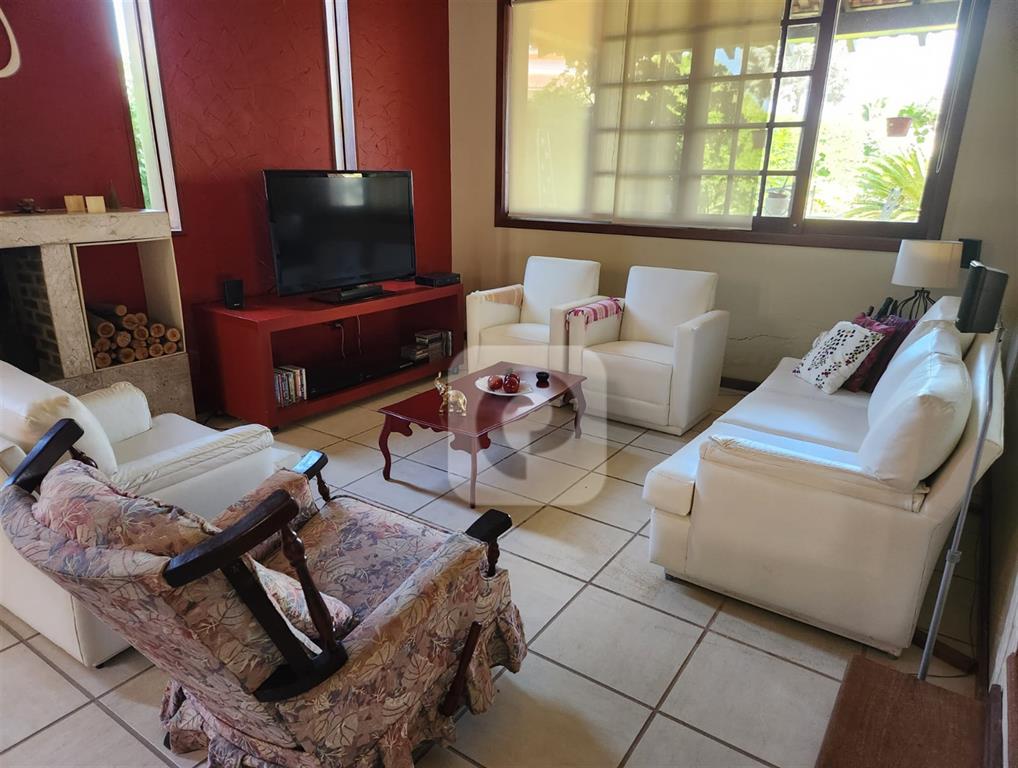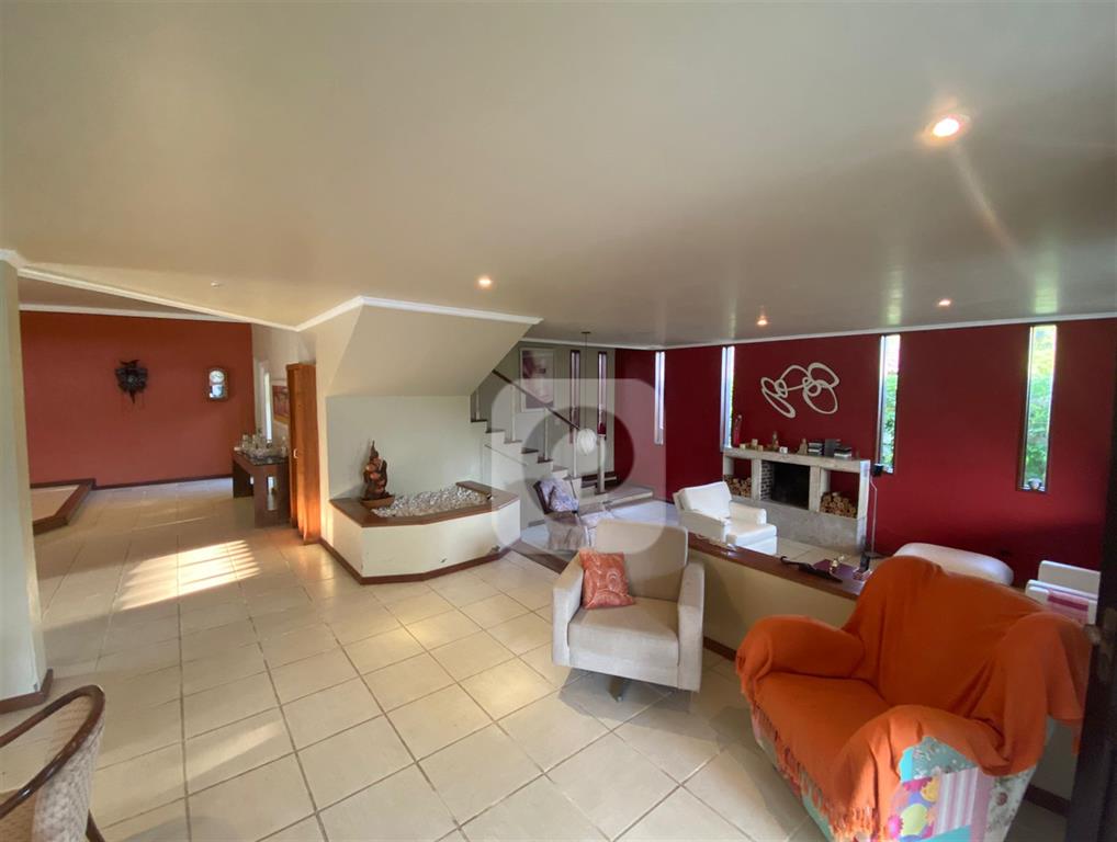 Área interna: Sala de Estar, Sala de TV com Lareira e Sala de Jantar, todas integradas e com janelas que permitem entrada de iluminação natural e lavabo de suporte.