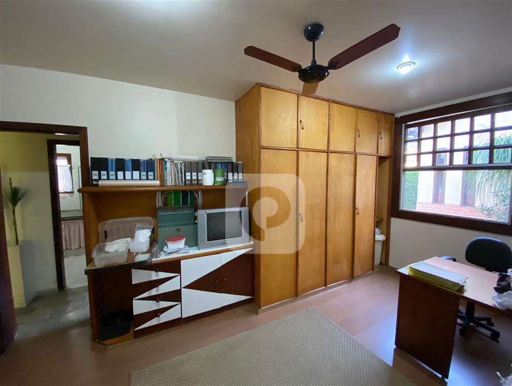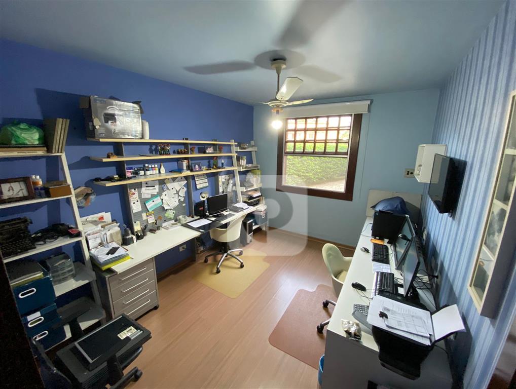 5 quartos, sendo 2 suítes. Suíte master com closet e banheiro com hidromassagem e claraboia. 2 banheiros sociais de apoio.