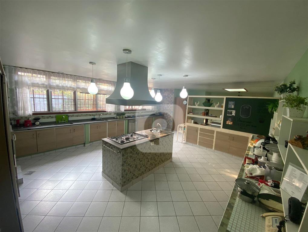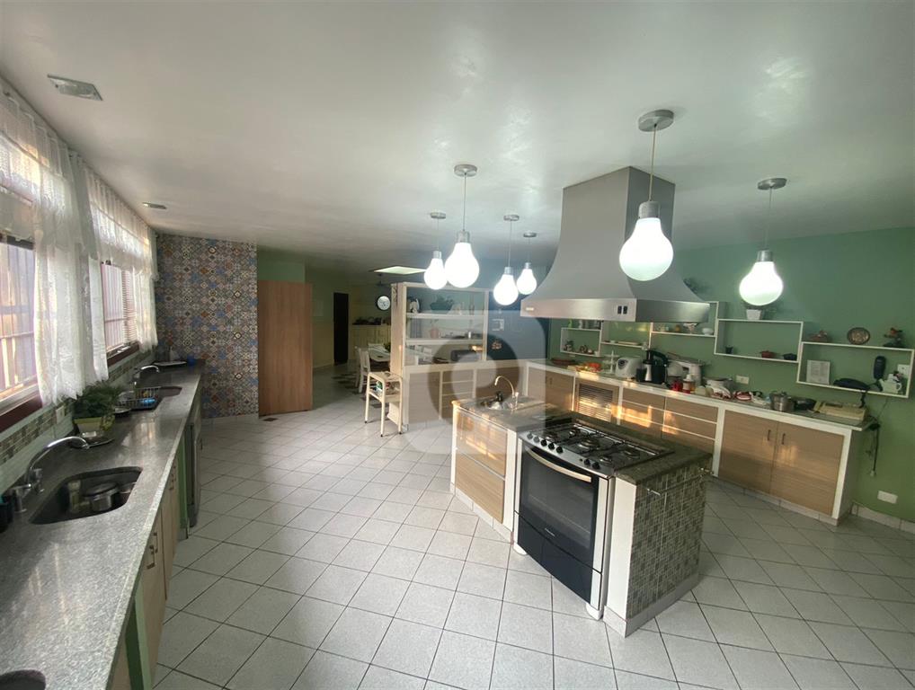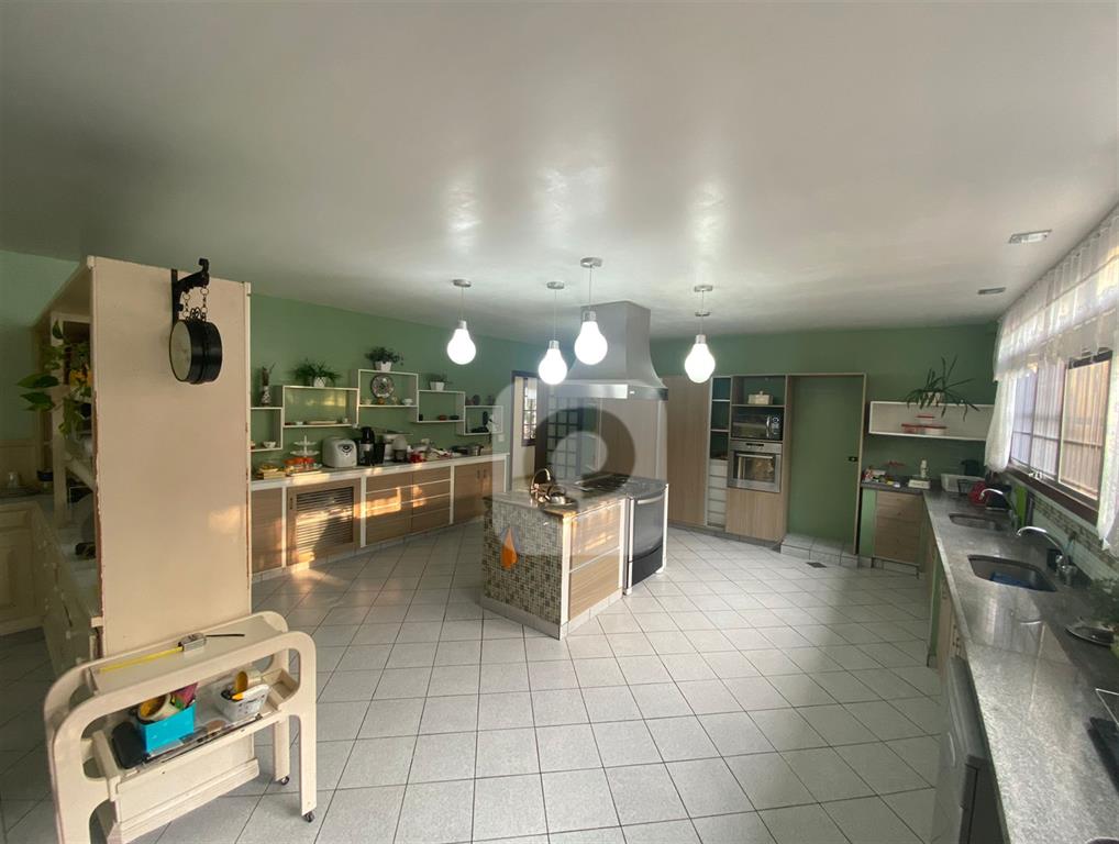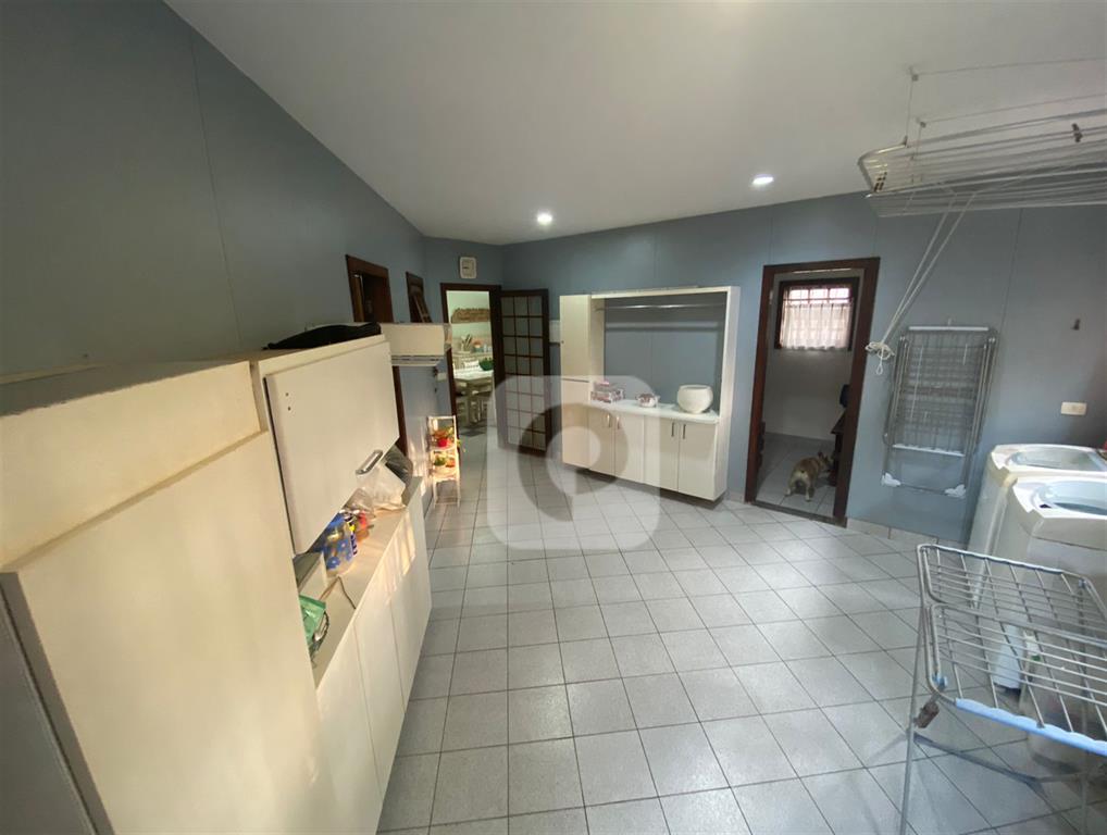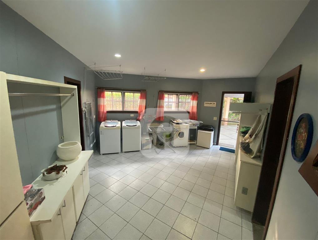Cozinha com armários embutidos, ilha com cooktop, pia de apoio e ampla despensa. Área de serviço com dependência completa e quarto adicional.