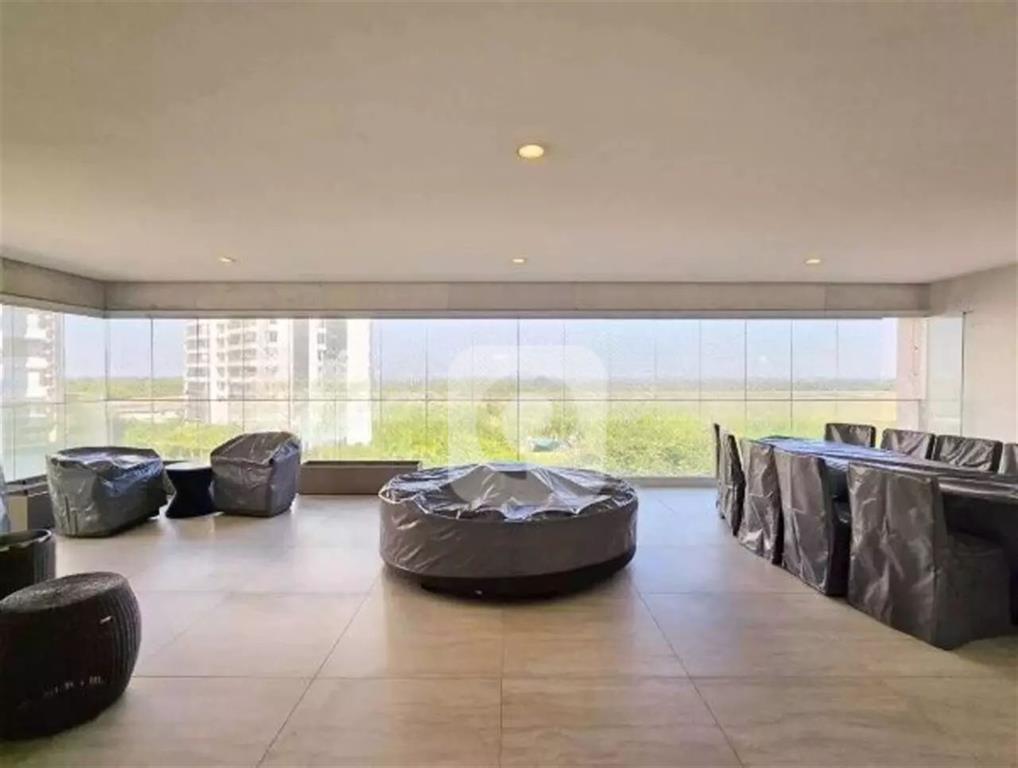 Ampla sala em ambientes integrados, com projeto de iluminação que cria uma atmosfera única, conectada a uma varanda espaçosa com vista livre para o campo de golfe – perfeita para momentos de contemplação ou celebrações memoráveis.